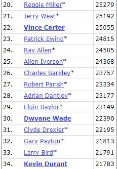 杜兰特生涯总得分超越拉里-伯德 排在历史第33位