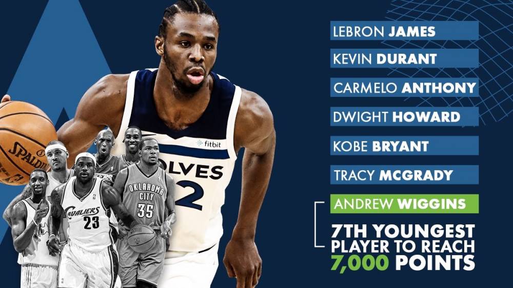目前,维金斯已经得到11分,个人常规赛得分突破7000大关,成为NBA历史第7年轻的7000分先生,前六名分别是:詹姆斯、杜兰特、安东尼、霍华德、科比和麦迪。