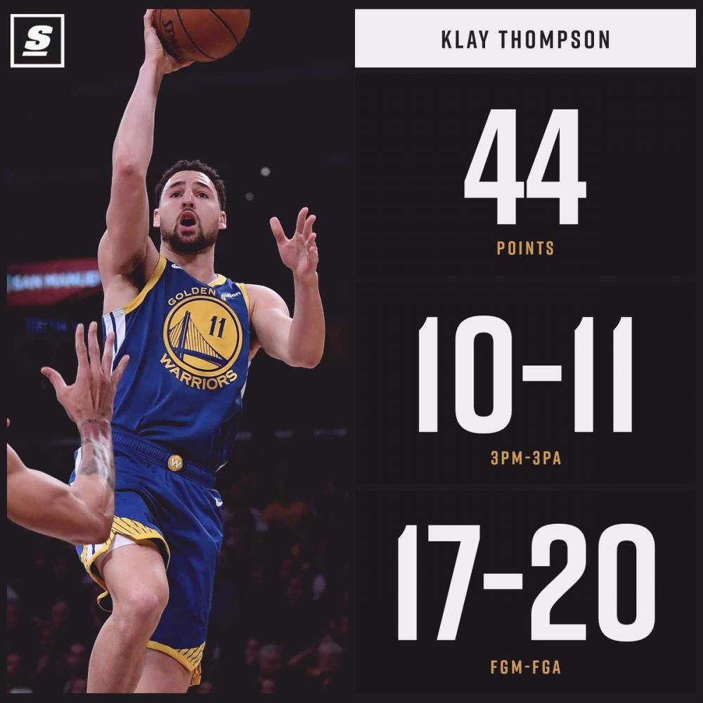 24直播网1月22日讯 今天勇士在客场130比111轻取湖人。克莱-汤普森手感爆棚,全场20投17中,三分球11投10中。