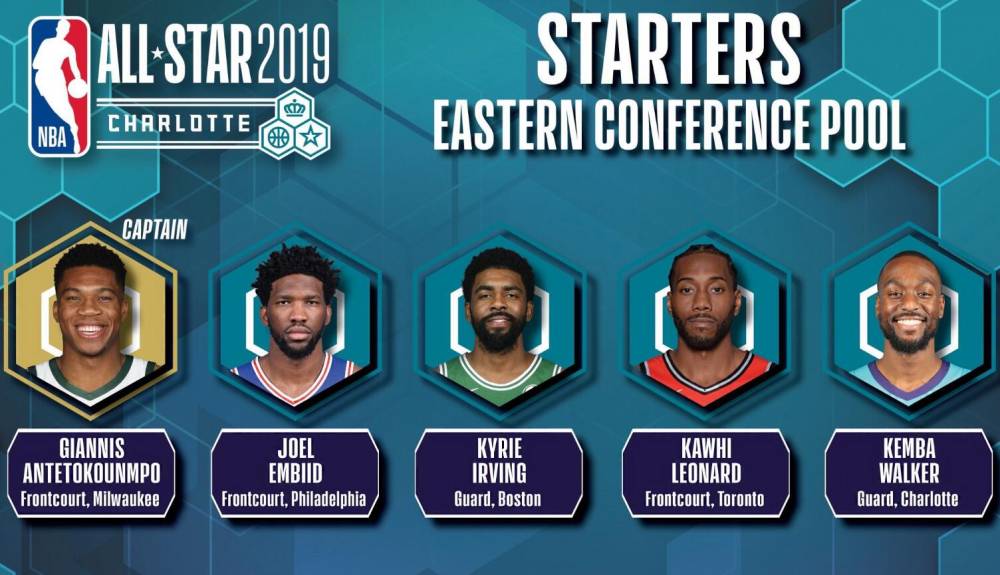 NBA东部全明星首发公布:字母哥、欧文、沃克、恩比德、小卡