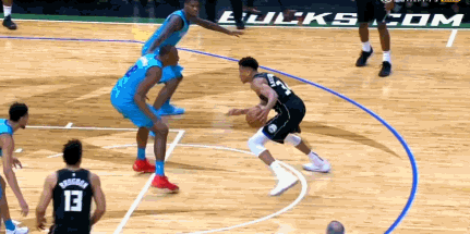 而字母哥上半场最精彩的一球是在首节中段,左侧肘区和队友一个挡拆配合后被放空,字母哥强行欧洲步杀到篮下,兰姆起跳已经打到了字母哥抬起的手和篮球,但字母哥凭借超强的身体素质,依然将球打进篮筐,还造成了兰姆犯规。