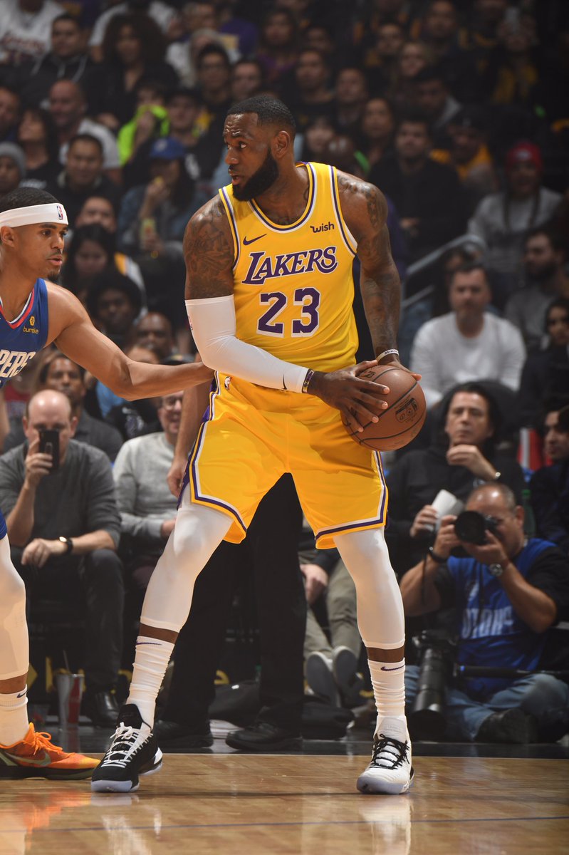 显然长时间的缺阵让詹姆斯在开场阶段也有些生疏,第一次进攻中篮下接球就出现了失误,第一次个人进攻出手干拔中投不中,之后的三分也没能命中,只在反击中依靠着库兹马的传球在篮下打进了复出之后的第一分。个人进攻手感不佳的詹姆斯开始更多地传球为队友创造机会,他先是妙传空切篮下的英格拉姆制造杀伤,又后场长传助攻快下的库兹马中投命中。