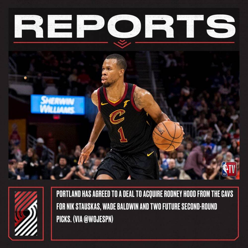 24直播网2月4日讯 根据NBA名Woj报道:开拓者和骑士已经达成一份协议,开拓者送出尼克-斯陶斯卡斯和韦德-鲍德温以及两个未来的二轮选秀权,交易得到罗德尼-胡德。