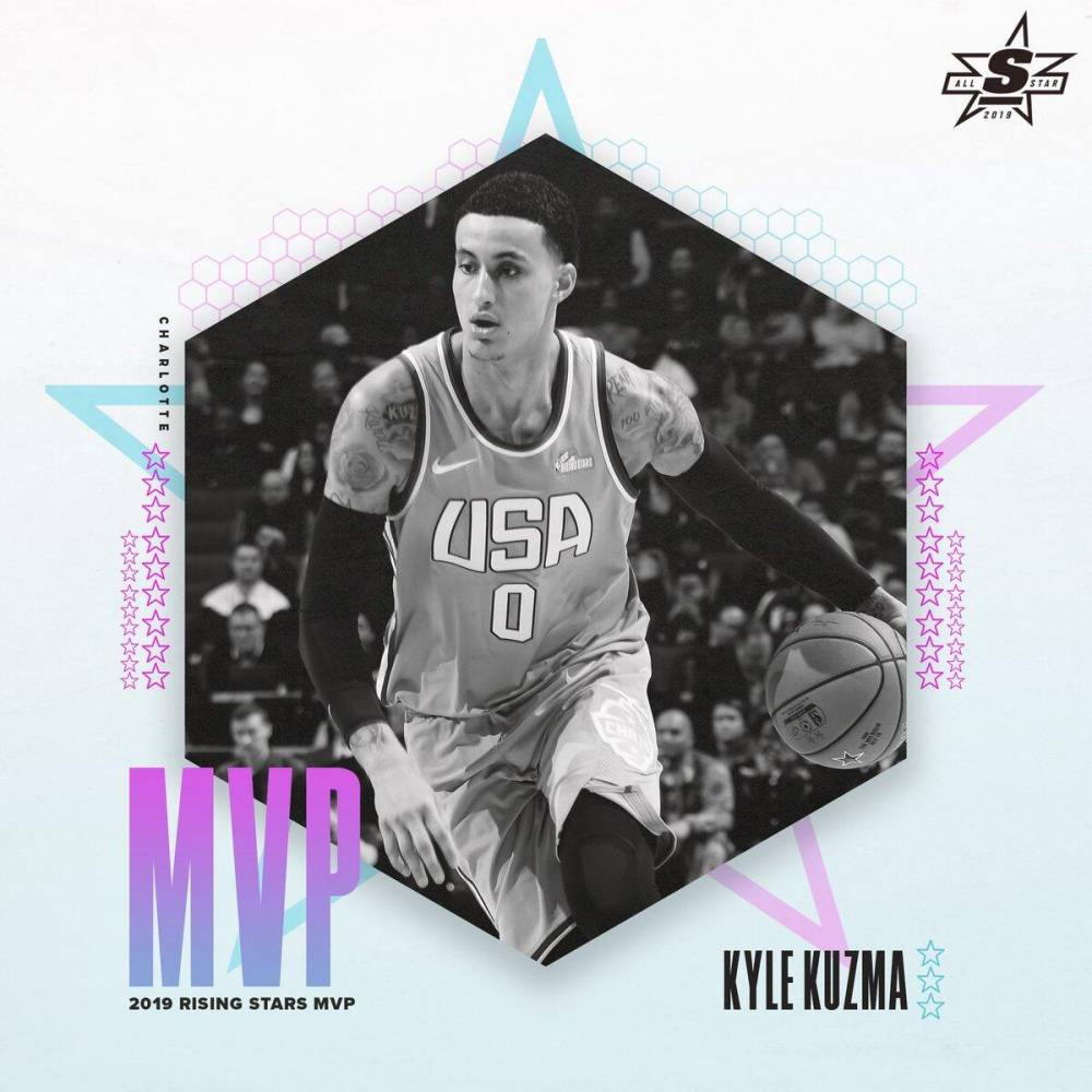 美国联队的湖人球员库兹马获得了本届新秀赛的MVP。