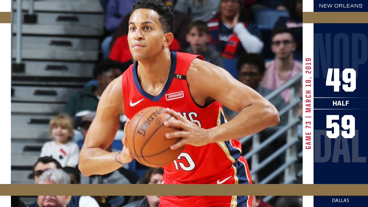 24直播网 2019年3月19日,NBA常规赛进入激烈的排名争夺战阶段,独行侠主场鹈鹕。半场结束,独行侠半场暂时以59-49领先鹈鹕10分。