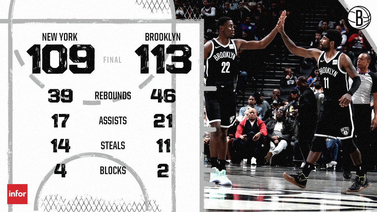 第四节比赛,诺克斯上来命中3分,丁维迪随后也打成2分,之后诺克斯连续第二记3分,又突破上篮得分,之后莫里斯后撤步3分也中,尼克斯将分差缩小到了6分。关键时刻,丁维迪制造犯规后两罚全中,再一次打停尼克斯。暂停回来,欧文又是一记急停跳投,之后兰德尔也命中2分,双方差距仍旧是8分。之后欧文出线失误,艾灵顿抓住机会3分得手,尼克斯又一次缩小分差。随后兰德尔篮下打成,尼克斯打出7-0攻击波,比分差距来到3分!暂停回来,艾灵顿又一次命中3分扳平比分,而欧文马上突破上篮得手,但艾灵顿马上回敬3分反超,巴雷特抢断欧文突破上篮得分,尼克斯取得3分优势!随后2分钟双方都没能够得分,丁维迪关键失误,让尼克斯获得喘息机会。暂停回来,欧文先是急停跳投得分,而后他后撤步3分命中,独力打出5-0攻击波,篮网再一次反超比分!尼克斯最后一攻,兰德尔失误,结果篮网最终险胜对手。