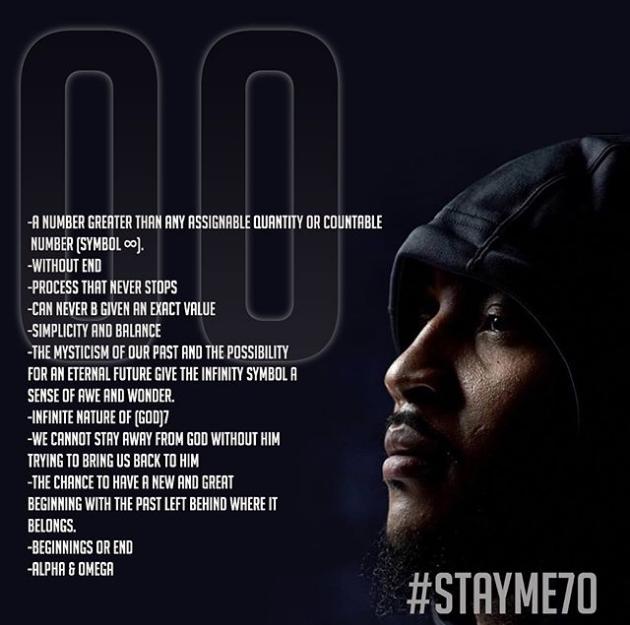 在图片一旁,安东尼配文说道:“One should be concentrating on clues that the universe is dropping for them to take up a quick reaction.Divine power is seeking my undivided attention.I had to achieve the tranquility of spiritual maturity through the guidance of the Universe.I WILL ALWAYS BE 7”