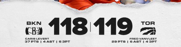 范弗里特29分 西卡20分 勒维尔37分 猛龙险胜篮网取14连胜