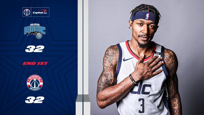 首节开始,布莱恩特勾手命中拿下第一球,武切维奇拿下篮板之后给到戈登打进,双方开局都进入了自己的节奏,交替得分,没有拉开分差。之后武切维奇两分命中,戈登三分命中,奇才眼看魔术要起势,连忙叫出暂停,暂停回来后,奇才即使调整,布莱恩特命中三分将比分缩小。之后双方再次处于胶着,轮番得分。最终首节结束,双方以32-32战成平手。