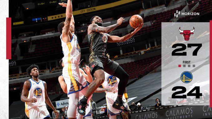 2020-21赛季NBA常规赛,金州勇士做客对阵芝加哥公牛。此前勇士未尝一胜,在圣诞大战更是惨败,而公牛战绩同样惨淡,两队都争取取得新赛季的首胜。