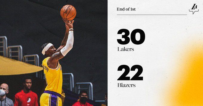 首节,由詹姆斯补篮拿下比赛首分,随后詹姆斯又在外线连中两记三分,湖人开局取得12-5领先。开拓者依靠利拉德的三分打破僵局,但湖人外线手感火热,波普连中三记三分,湖人很快便获得13分的优势。此后利拉德造三分犯规三罚全中,加上替补特伦特连连命中两记三分,开拓者迅速追上比分。末段,湖人稳住局势,詹姆斯打成2+1,库兹马三分命中,湖人首节结束时30-22领先开拓者。
