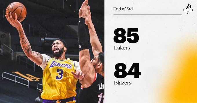 两队换边再战,湖人开始反击,利拉德虽然开局上来命中一记三分,这记三分是开拓者前近4分钟里唯一的进球。湖人则多点开花,除了詹姆斯外,波普的外线三分和施罗德接连造犯规的罚球,湖人开局回敬一波15-3的进攻高潮反超比分,并迫使开拓者叫暂停。暂停回来后麦科勒姆和利拉德相继命中三分为开拓者及时稳住局势,之后浓眉哥和施罗德相继打成2+1将领先保持住,但顽强的开拓者不甘示弱,利拉德三分稳稳命中,随后又联手***拿下4分,开拓者咬住分差以84-85落后一分。