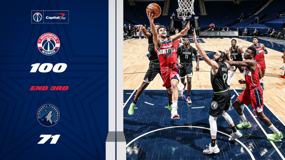 在第三节开始时,奇才领先3分处于微妙领先状态,随后奇才在第三节打出多次攻击波,在比赛还剩5分钟时,奇才在第三节单节得分比森林狼多出16分,一举以83-66领先森林狼。凭借着森林狼的多次失误,奇才打出了一波15-2的攻势,逼得森林狼喊出暂停。在暂停回来之后,森林狼依然没能调整自己的状态,难以抵挡奇才的冲击,最终在第三节结束时,奇才100-71领先森林狼。