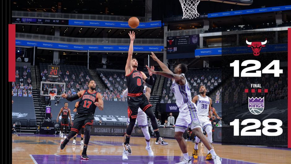 末节开局,双方互不相让,国王这边别利察和哈利伯顿相继命中三分刚刚取得领先,那边公牛就依靠怀特的2+1和加福德的进球追上比分。节中两队都无法占到便宜,哈利伯顿是国王这一节开局表现最好的球员,他在节中连拿5分为国王咬住比分。末段公牛仍然是怀特和拉文的双枪组合抢分,拉文的两次罚球命中将分差缩小至1分。但最后时刻他错失反超三分,而希尔德则投进致胜3+1,最终国王128-124力克公牛。