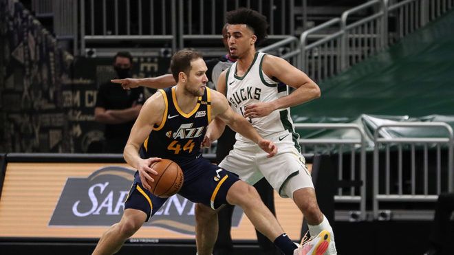 NBA常规赛:爵士终结雄鹿三连胜,米切尔独砍32+5+7!