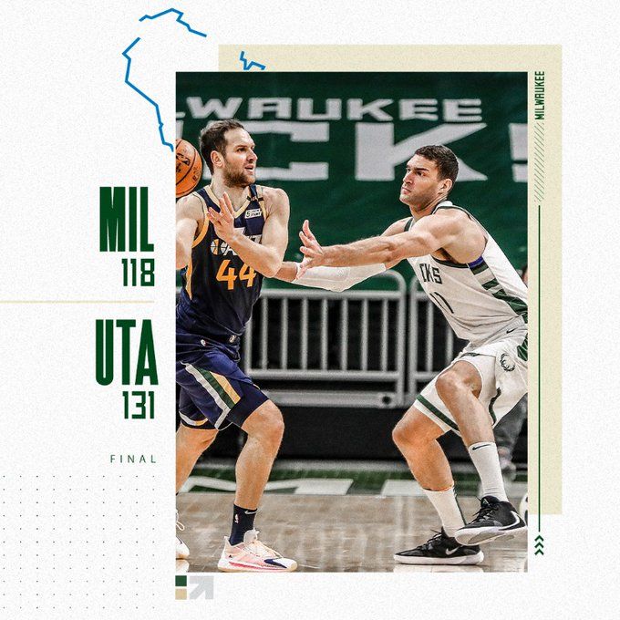 末节之争,双方就进入近三分钟的得分荒,随后米切尔的跳投继续扩大优势,而爵士这边以博格达诺维奇的三分为首,加之米切尔的连续中投得分,爵士送出12-0的进攻高潮将分差拉大至20分的领先。随后,字母哥强突为雄鹿破荒送出一波6-0的攻势,但爵士队外线都能立即回击,雄鹿苦苦追分却仍然无法将分差缩小,最终爵士以129-118战胜雄鹿终结其主场连胜。