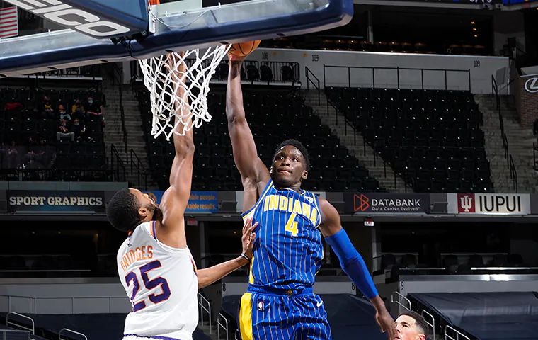 24直播网1月10日讯,2020-21赛季NBA常规赛正在继续,步行者坐镇主场迎战步行者。 前者近来取得两连胜升到了东部榜首的位置,而后者上场比赛则是输给了活塞,暂列西部第二位。比赛上来两队便陷入拉锯战,场上比分交替领先,上半场双方都没能将比分拉开。下半场回来,双方在场上依然十分胶着,末节,步行者突然陷入得分荒,太阳队趁势拉开比分,比赛失去悬念,最终太阳以125-117力克步行者。