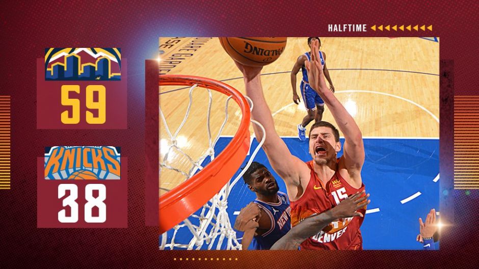 第二节比赛,尼克斯持续打铁的状态,开局5分钟仅靠着诺尔罚球得1分。而掘金内外开花,杰迈克尔-格林命中2分后,分差来到10分,接着哈尔滕斯泰因连得4分,莫里斯也打进两分,随着格林再中2分,分差来到18分。直到本节中段,米切尔-罗宾逊打进两分才助尼克斯打破僵局,兰德尔随后站了出来连得6分,帮助球队缩小分差。而掘金得外线火力十分凶猛,哈里斯和米尔萨普再中三分,而尼克斯仅靠着小佩顿打进2分。半场战罢,掘金以58-38领先尼克斯20分。