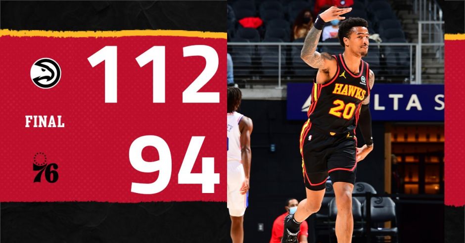 24直播网1月12日讯,2020-21赛季NBA常规赛火热进行中,76人客场挑战老鹰。前者近期五场比赛取得3胜2负的战绩,近期遭遇两连败;后者近期五场比赛取得1胜4负的战绩,遭遇四连败。本场比赛,76人仅在首节占据优势,后三节老鹰在特雷-杨带领下,攻防两端压制76人,抹平分差并取得反超。最终老鹰6人得分上双以112-94战胜76人。