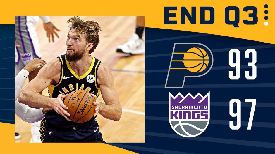 易边再战,萨博尼斯低位吃饼轻松打进空篮,特纳底角射进三分,但巴恩斯同样位置立马远投给出回应,两队下半场的外线手感都还不错,巴恩斯里突外投个人连拿五分打停步行者,调整过后命中率下滑的步行者依旧连续远投不中,巴格利跟进暴扣得手后国王将分差拉大到两位数,萨博尼斯篮下强起打成2+1止血,布罗格登借掩护轻松上进空篮。三节结束,国王97-93领先步行者 。