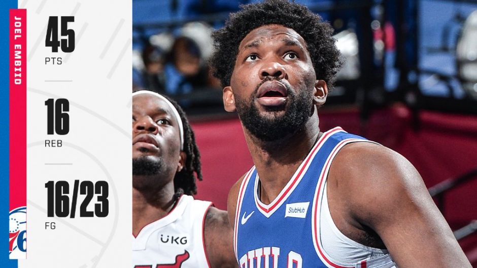 值得一提的是,恩比德砍下45分16板5断的数据后,成为76人队史上第二位完成此数据的球员,第一位是巴克利。