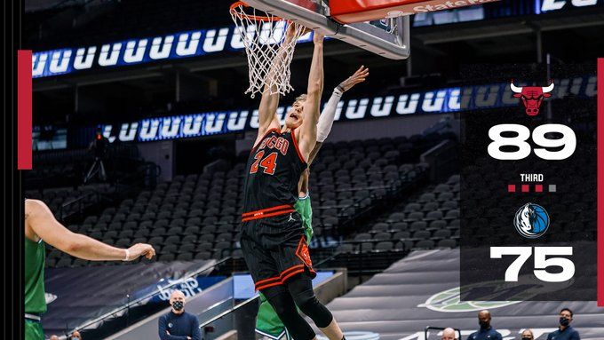 24直播网1月18日讯,2020-21赛季NBA常规赛正在继续,独行侠坐镇主场迎战公牛队。独行侠在上一场惜败雄鹿后排名西部第六位 ,而公牛队则是遭遇了四连败排名东部第十三位。比赛开始凭借着东契奇的出色发挥带领球队率先取得领先,公牛队在一波奋力追上比分后,两队就此陷入拉锯战。此后,公牛队突然发力将分差拉开,最终公牛以117-101力克独行侠。