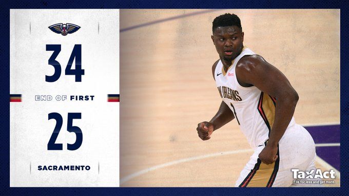 首节比赛开始,福克斯首先突破上篮得分,希尔德底角三分一针见血,两人一内一外连得5分帮助球队打开局面,亚当斯跟进轻松单臂扣回敬,霍姆斯远程抛进,布莱索和锡安联手连续进攻内线取得10分帮助球队实现反超,霍姆斯和巴格利联手取得6分再度反超。此后两队陷入拉锯战中,双方换上二阵容,锡安跳起放进,海耶斯急冲上篮造成2+1,雷迪克压哨射进三分,鹈鹕队打出一波14-5的进攻高潮将分差扩大。