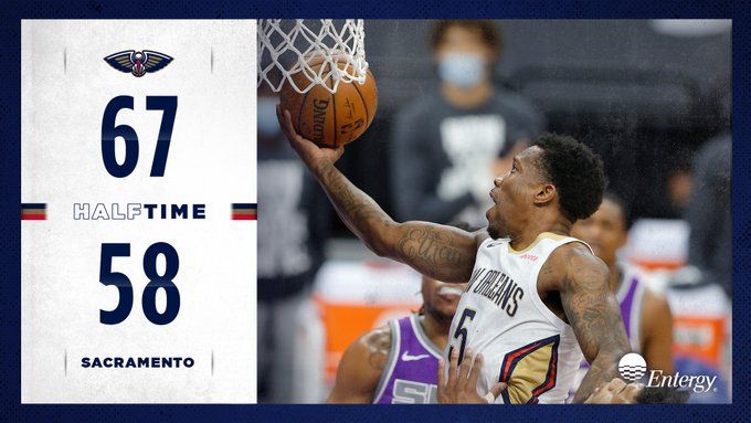 NBA常规赛:半场战罢,鹈鹕67-58领先国王!