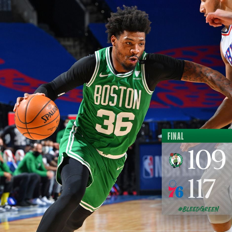末节,科克马兹的三分为76人首开纪录,随后米尔顿和哈里斯相继拿分为球队追分,绿军开局顶住压力,普理查德三分予以回应顶住压力,霍华德上演精彩空接扣篮,随后哈里斯打成2+1帮助76人实现反超。暂停回来双方交替拿分,斯马特和布朗联手拿分为绿军反超比分,恩比德一人连投带罚拿下5分及时止血,随后格林的三分为球队守住优势。最后时刻面对绿军的反扑,格林的关键进攻篮板和西蒙斯的抢断成为决定胜负的关键,76人转换成4次罚球并将领先扩大至6分奠定胜局。最终,76人117-109力克凯尔特人拿下比赛。