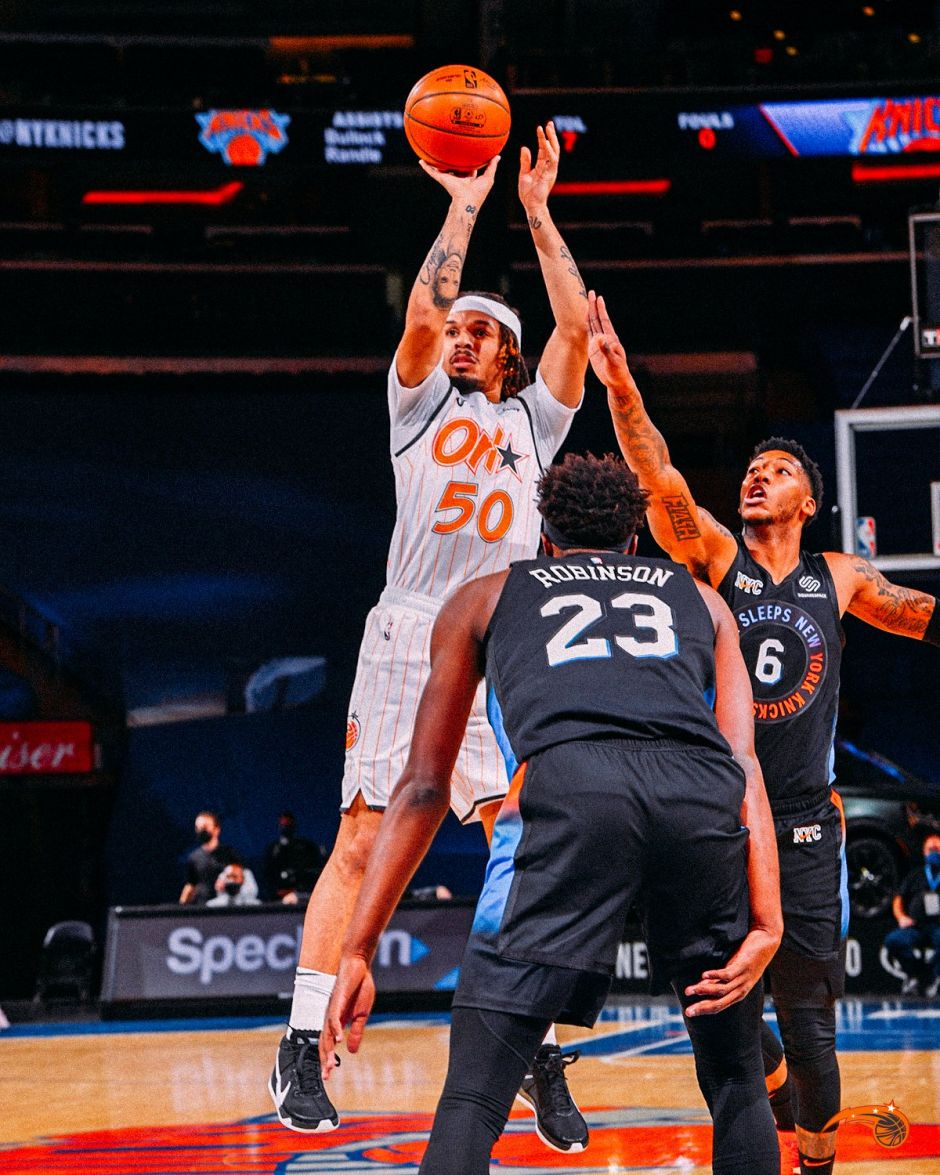 24直播网1月21日讯,魔术和森林狼的比赛,魔术后卫科尔-安东尼在最后一攻从后场运球到前场三分球压哨命中,帮助魔术97-96绝杀森林狼。