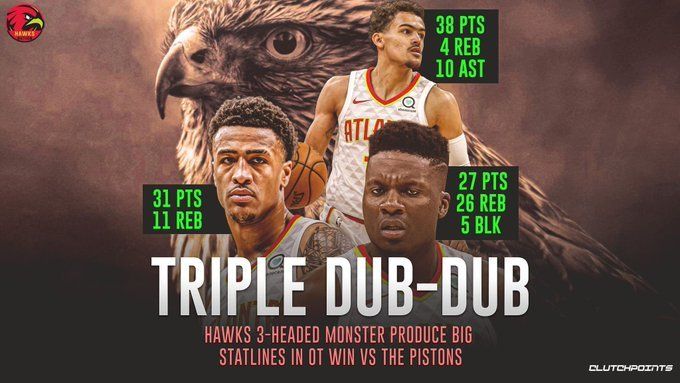 北京时间1月21日,老鹰123-115击败活塞,这场比赛两队鏖战到最后1分钟,特雷杨与卡佩拉完成空中接力后才锁定了胜局。此役后老鹰拿下了二连胜重新回到正轨上,7胜7负排在东部第七。特雷杨打了44分钟,26中11,三分5中3,罚球19中13拿下38分10助攻2抢断1盖帽,命中率42.3%,三分命中率60%,有哨子的吹杨不可阻挡。