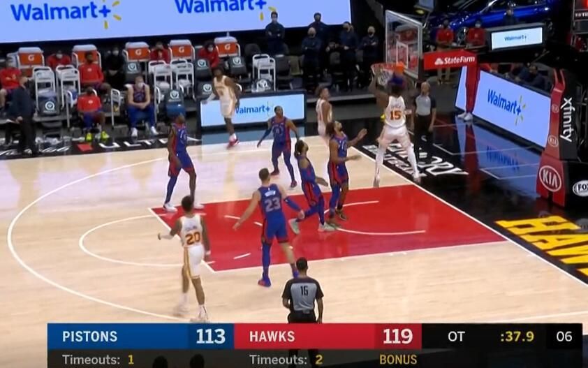 终场前1分23秒,活塞113-113老鹰打平,卡佩拉在篮下面对格里芬完成了一个关键2+1这个球价值千金。