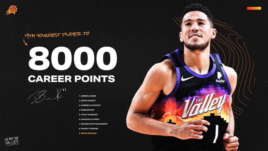 解锁新成就,布克生涯总分达到8003分,加入詹姆斯行列!