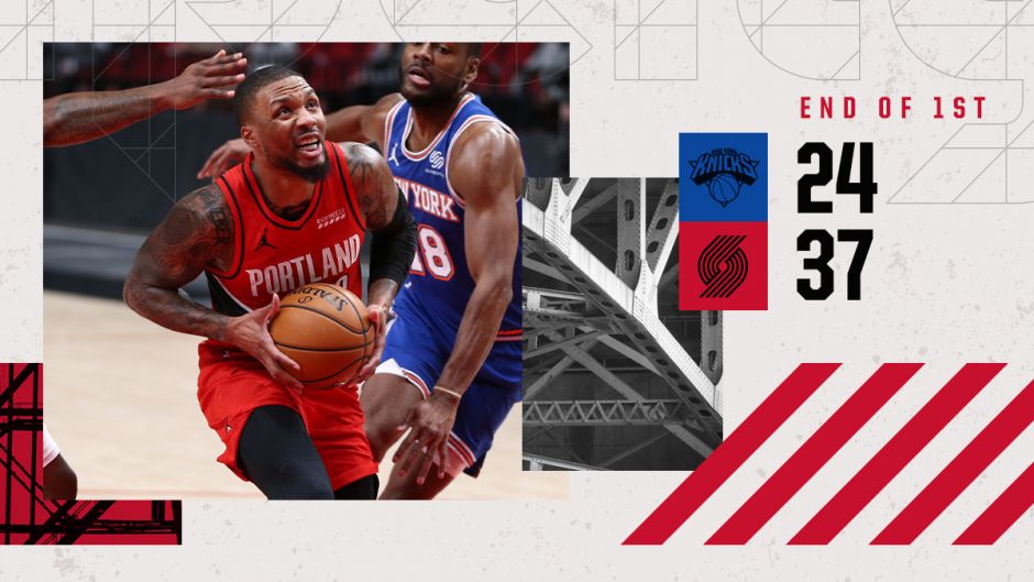 NBA常规赛:首节战罢,开拓者37-24领先尼克斯