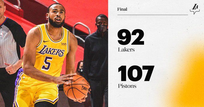 末节之争,双方开局对攻都无法阻止对手,活塞方面罗斯连拿4分撑起球队进攻,湖人这边哈雷尔和塔克成为奇兵,两人合力攻下9分紧追比分。节中,湖人换上主力之后却经历长达7分钟的得分荒,而活塞则凭借着格里芬和艾灵顿的两记三分打出16-0的攻势一举确立起17分的领先。自此湖人大势已去,湖人主帅沃格尔连叫暂停表达不满,并在随后撤下全部主力。最终,活塞107-91击败湖人,并送湖人两连败。