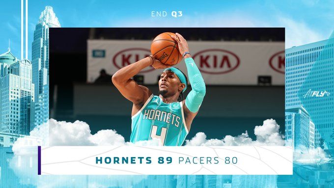 易边再战,华盛顿连续命中两记三分,泽勒切篮下抛投稳稳命中,两人开场打出一波8-0再次将分差扩大至两位数的领先。特纳和麦克德莫特纷纷打板命中止血,海沃德扬手就是一记三分接力,鲍尔上篮搁进,贾斯汀-霍勒迪三分终于开张,布罗格登手板三分踩线射中,鲍尔迎着防守上进,布里奇斯打手在送布罗格登两罚。节末,两队再次陷入拉锯战中,你来我往交替得分,步行者虽然无法追回分差,但黄蜂也没有机会将分差持续扩大,三节结束,黄蜂89-80领先步行者。