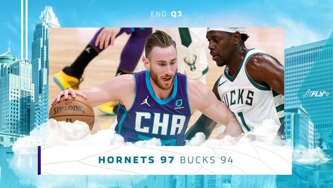 三节打完,黄蜂以97-94领先雄鹿3分。