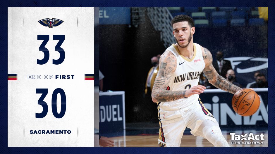 首节比赛,国王福克斯和霍姆斯完成配合,后者轻松篮下得分。随后鹈鹕鲍尔与福克斯互相回应三分,开局双方展现不错的手感。来到本节中段,双方比分非常焦灼,鲍尔突破造犯规两罚全中,莺歌三分命中,鹈鹕实现反超。随后国王福克斯连得4分,再次助球队反超。本节末段,怀特赛德内线打成2+1,帮助国王占据气势。但鹈鹕这边戈麦斯连得4分,福克斯打成2+1助国王回应,分差抹平。最后锡安打成2+1,沃克得到对方技术犯规的罚球,取得3分的领先。 首节结束,鹈鹕以33-30领先国王3分。