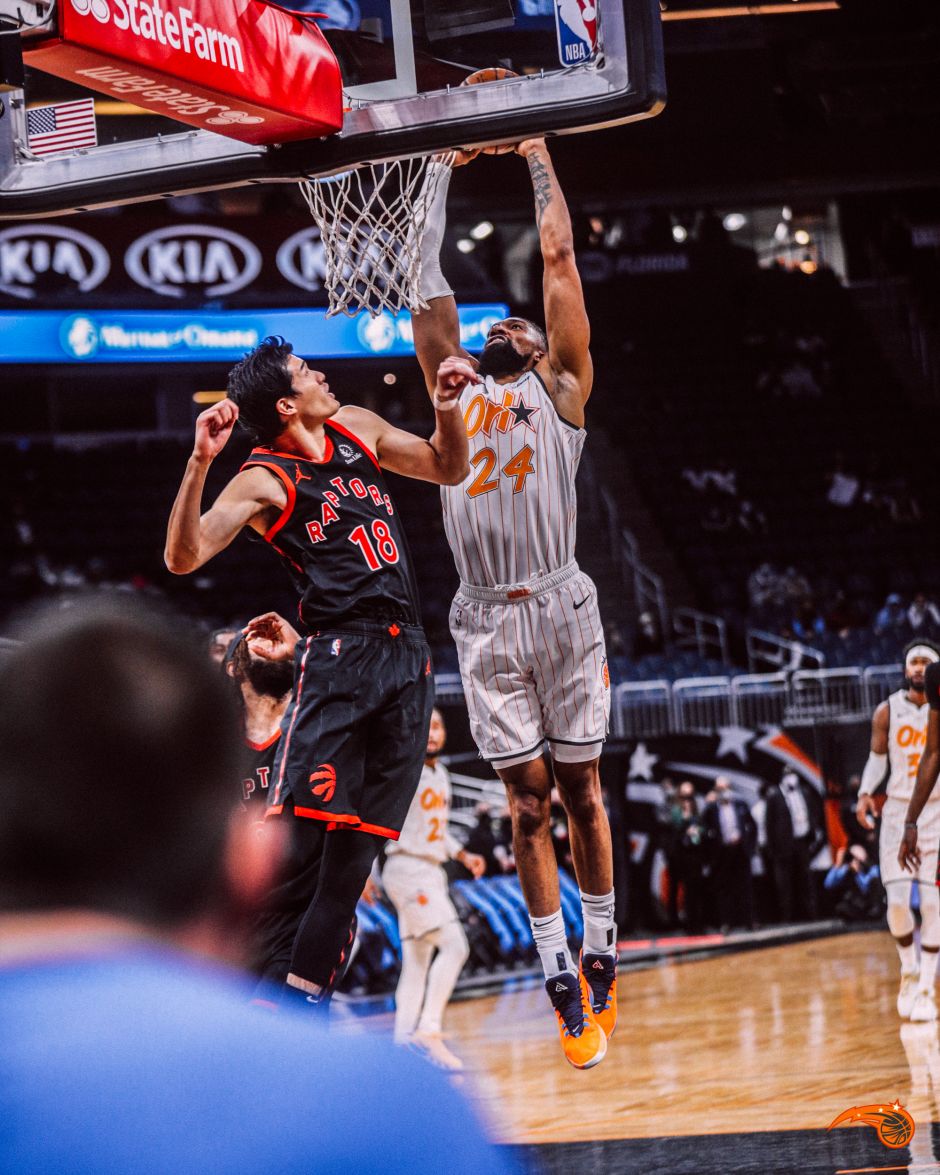 魔术方面:武切维奇21分18板4助、富尼耶21分5板4助2帽、科尔-安东尼16分7板2助1断、培根15分5板1助、詹姆斯-恩尼斯10分4板1助1断、丘马10分3助1断、肯-伯奇6分1板、特伦斯-罗斯3分3板2助1帽、加里-克拉克3分3助1帽1断、乔丹-博恩3分2板4助。