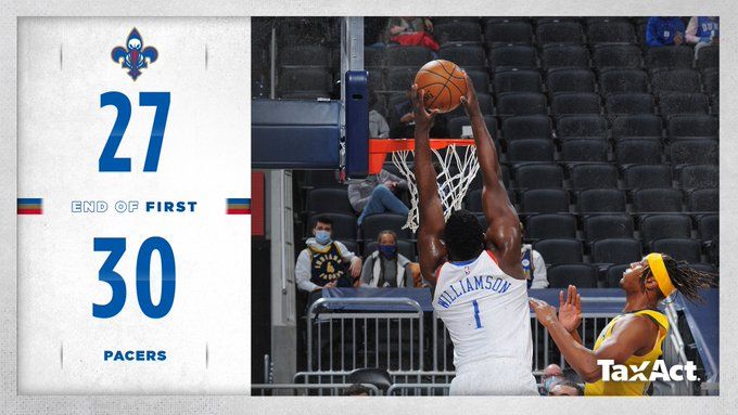 首节战罢,步行者以30-27领先鹈鹕3分。