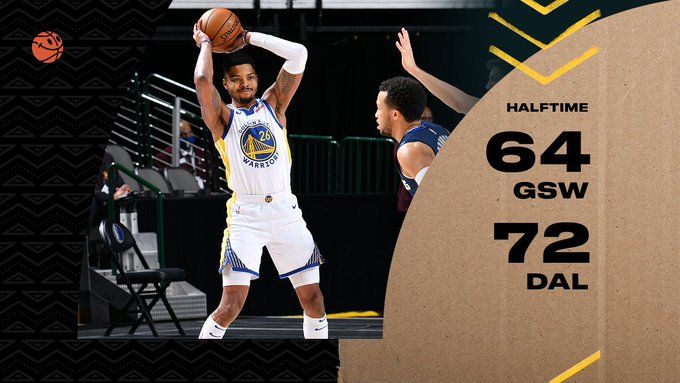 次节回来,勇士进入进攻停滞,前段仅有2次运动战得分,东契奇突破造杀伤,伯克命中中投和三分,独行侠乘势将分差扩大至9分。波尔津吉斯的中投让球队领先达到两位数,双方继续有来有回。调整过后,勇士再次掀起追分攻势,贝兹莫尔连投带罚攻下4分,库里命中2记三分让分差保持在5分上下。东契奇在中场结束前的中投帮助独行侠领先8分,以72-64进入下半场。