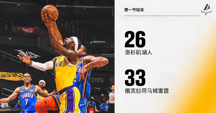 首节结束,在贝兹利的带领下,湖人以26-33落后雷霆7分。