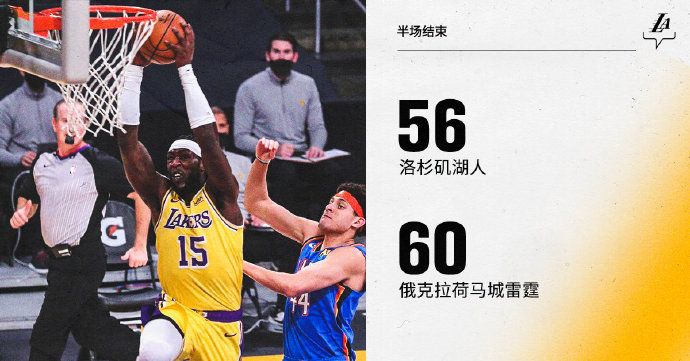 24直播网2月09日讯,2020-2021赛季NBA常规赛正在进行中,湖人对阵雷霆,半场战罢,湖人以56-60暂时落后雷霆4分。