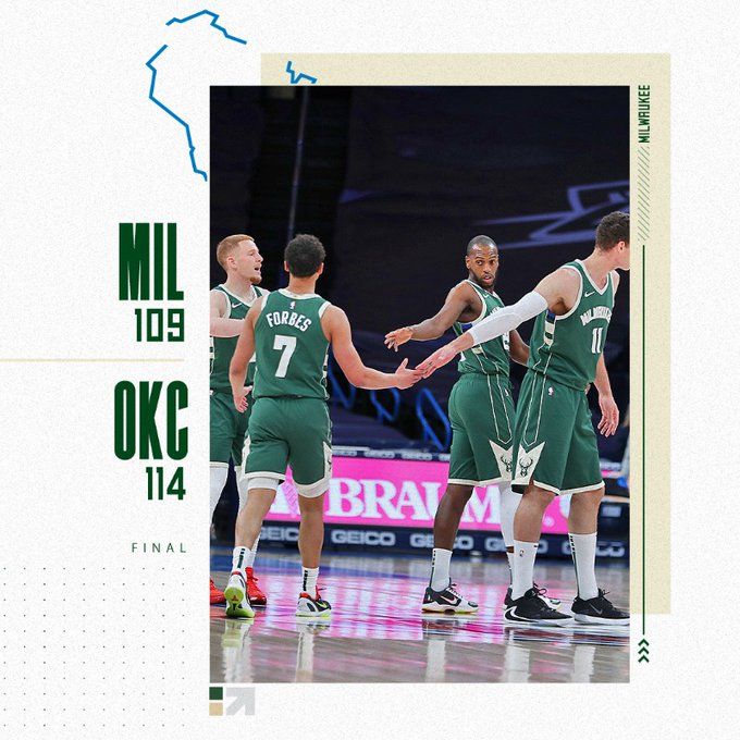 雄鹿方面:字母哥24分17板10助3帽3断、米德尔顿23分3板3助1帽1断、波蒂斯19分6板2断、迪温琴佐17分8板2助1断、福布斯14分2板、康诺顿7分7板1助1断、大洛2分2板1帽、DJ-奥古斯丁1分7助。