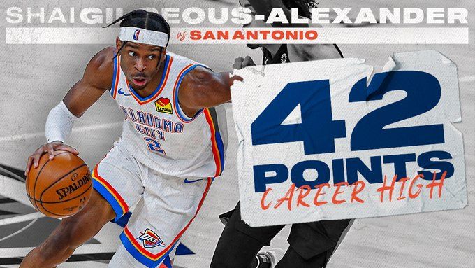 此役,雷霆后卫亚历山大发挥出色,出战38分钟,20投13中,砍下42分8篮板4助攻,其中42分刷新了个人常规赛单场生涯得分纪录。