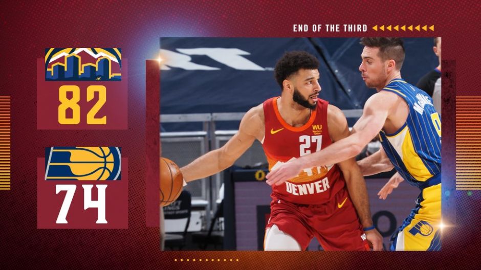 三节结束,掘金队以82-74暂时领先步行者8分。