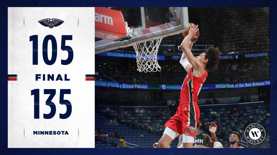 鹈鹕方面:锡安24分5板2助、英格拉姆13分3板4助1帽、亚当斯13分12板1断、贾克森-海斯11分1板1助1帽、刘易斯11分2板4助1帽3断、鲍尔10分2板7助1帽2断、尼基尔-亚历山大-沃克10分4板2助1帽、哈特5分13板3助、大埃尔南戈麦斯2分1板1助、布莱索2分2板2助1帽、桑韦尔2分1板2助1断、尼科勒-梅利2分5板。
