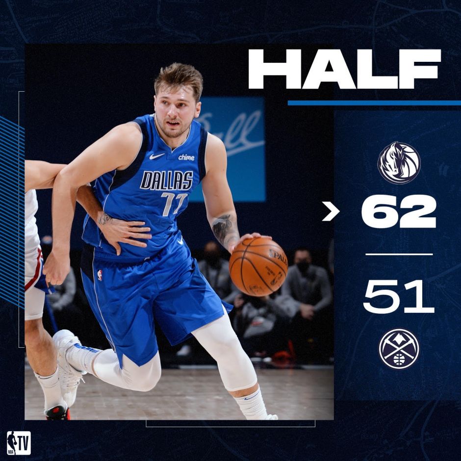24直播网3月14日讯,2020-2021赛季NBA常规赛继续进行着,掘金主场迎战独行侠。上半场结束,独行侠以62-51领先掘金11分。东契奇16分3篮板8助攻,波尔津吉斯12分3篮板1盖帽。