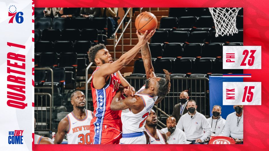 NBA常规赛:首节战罢,76人以23-15领先尼克斯8分