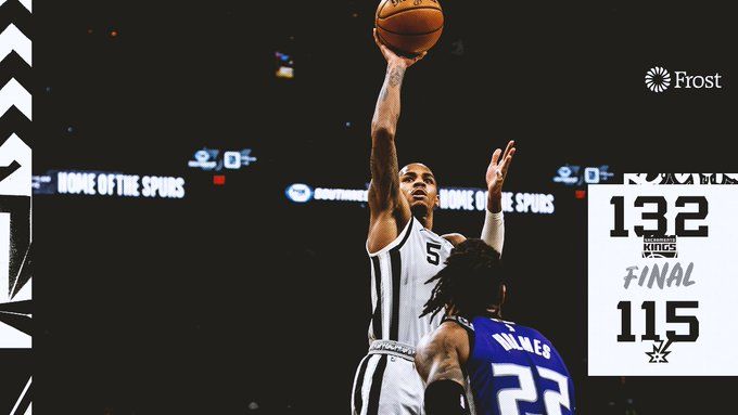 马刺方面:德章泰-穆雷23分8板7助、德里克-怀特19分3板1助1断、德罗赞17分3板8助、珀尔特尔17分11板2助3帽、盖伊10分4板2助2断、米尔斯9分1助、尤班克斯8分5板1助1帽1断、凯尔登-约翰逊7分4板1助、瓦塞尔3分3板1断、卢卡-沙马尼奇2分。